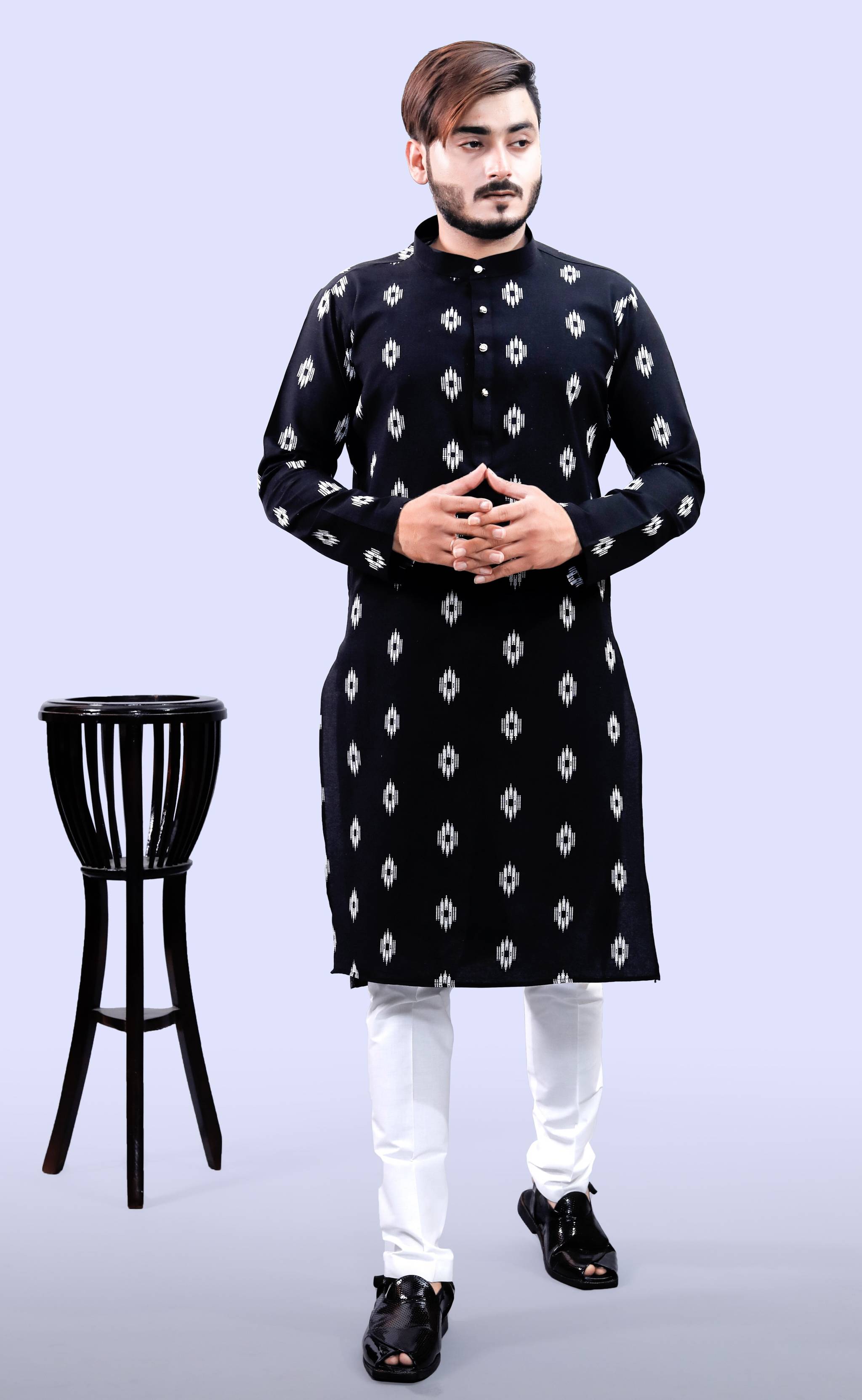 Tibra Collection Men Printed Cotton Blend Straight Kurta  (Black)