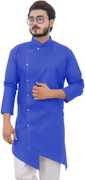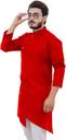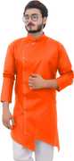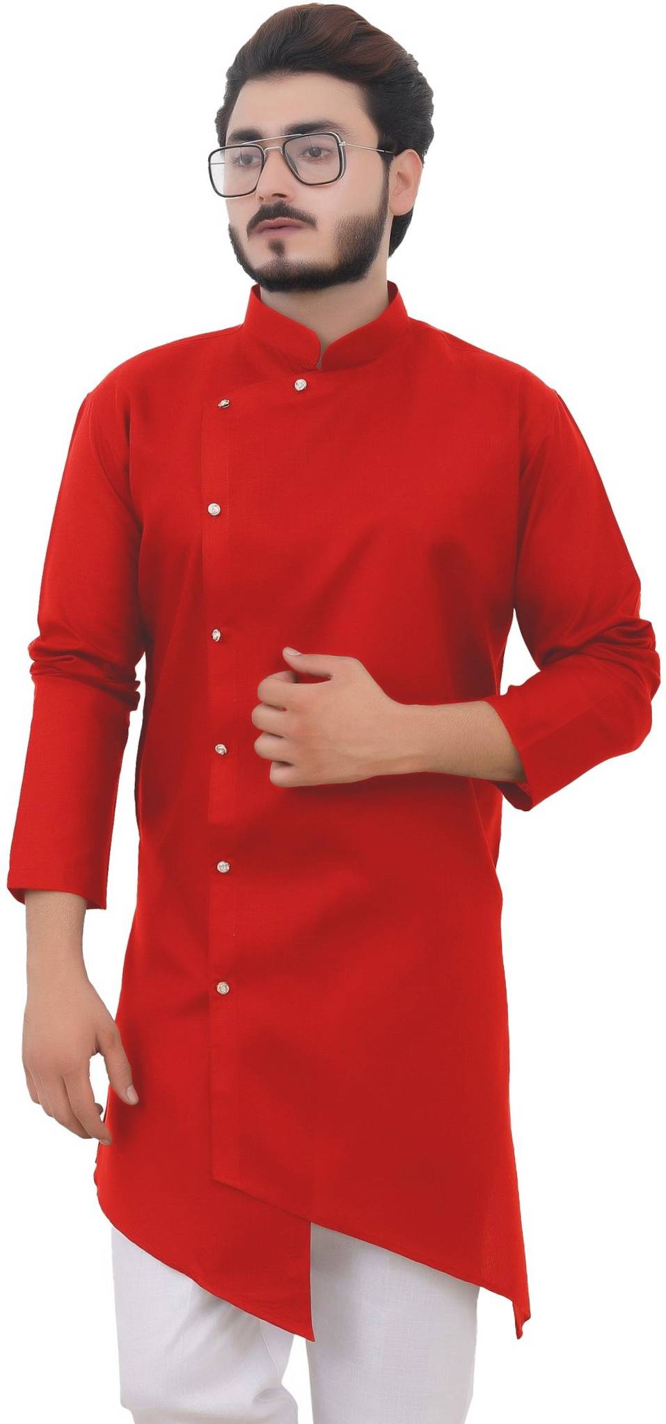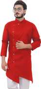 Tibra Collection Men Solid Cotton Blend Asymmetric Kurta  (Red)