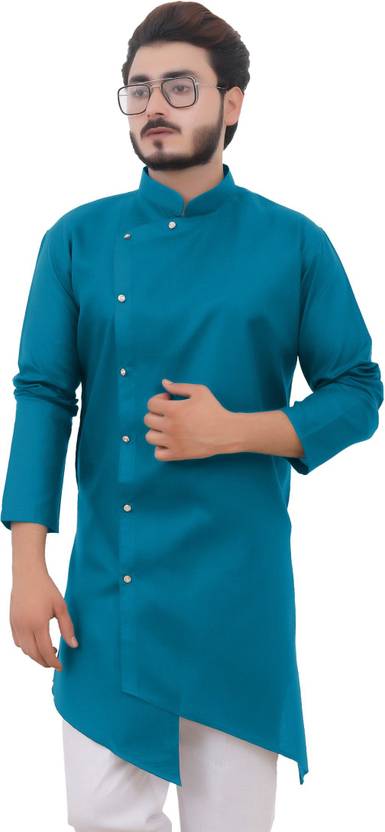 Tibra Collection Men Solid Cotton Blend Asymmetric Kurta  (Green)