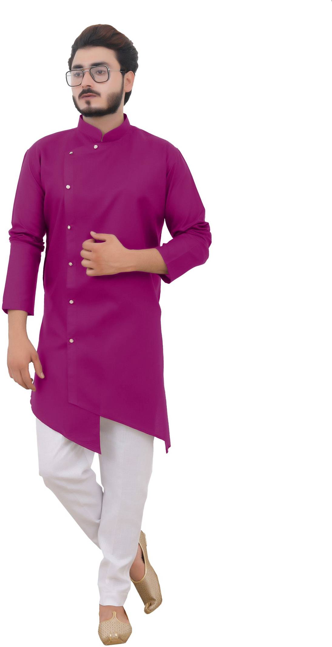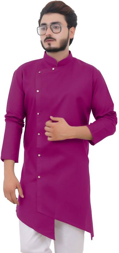 Tibra Collection Men Solid Cotton Blend Asymmetric Kurta  (Purple)