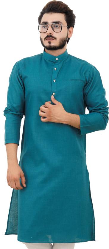 Tibra Collection Men Solid Cotton Blend Straight Kurta  (Dark Green)