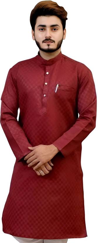 BRIFFASHION Men Self Design Khadi Cotton Straight Kurta (Maroon)