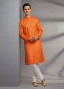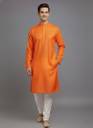 Tibra Collection Men Solid Cotton Blend Straight Kurta  (Orange)