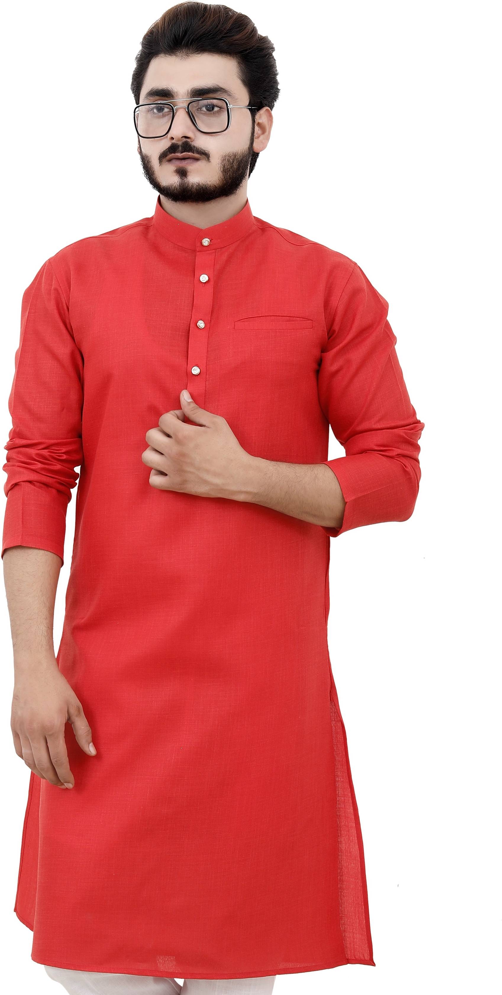 Tibra Collection Men Solid Cotton Blend Straight Kurta  (Red)