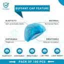 Comfortable Fit: Designed to cover hair completely without being too tight, providing a comfortable and secure fit for extended wear., Breathable Material: Made from lightweight, breathable, non-woven polypropylene or SMS fabric, allowing air circulation to keep the scalp cool and reduce sweating., Hygienic and Disposable: Single-use cap prevents contamination, ensuring a clean and sterile environment in medical, laboratory, or food service settings., Elastic Band for Secure Fit: Features a soft, stretchable elastic band that holds the cap in place comfortably around the hairline without slipping or causing pressure., Blue Color Coding: Commonly used blue color is standard in healthcare settings for easy visual identification of personnel and hygiene compliance., Non-Irritating Fabric: Skin-friendly material minimizes irritation, making it suitable for sensitive skin and prolonged use., Lightweight and Portable: Easy to store and carry, making it convenient for quick changes and busy environments.