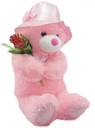 This teddy bear comes in soft eye-pleasing colors and is decorated with cute little adornments like a polka-dot hat, bow and a bouquet of roses. This adorable teddy can also be a perfect display item for your living room or car.