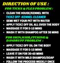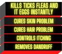 Can kill ticks and fleas instantly, Cures skin and hair problems, Makes coat soft and silky, Removes dandruff, controls itching