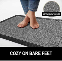Thanks to its cosy, soft woven top side, this mat offers a comfortable experience underfoot, particularly when standing barefoot. The gentle fabric surface cushions each step while providing steady traction. It is designed to be both water-resistant and anti-slip, ensuring comfort and safety across varied floor types. The non-slip backing holds this mat securely in place, reducing the risk of accidental movement. Additionally, its dust and moisture-absorbent quality can effectively capture dirt, mud, and water from shoes, helping maintain a clean floor environment.