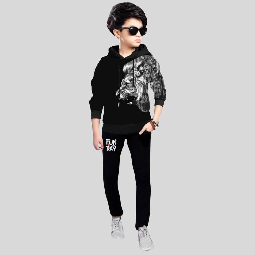 TICOSS Boys Cotton Blend hHooded Neck full sleeve T-Shirts and Track Pant (Boys Clothing Sets), Pack of 1- BIO WASHED Super combed Cotton Blend fabric - 180 GSM Fabric Unique Collection to your wardrobe - full Sleeve, Hooded Neck & Track Pants Set. The perfect combo a kids can wear to look stylish and feel comfortable as well. Since it's made of cotton blend, the fabric is breathable for the kids to match their energy level Experience ultimate comfort and royal look by wearing this Kids t-shirt. This T-Shirt & Track Pants set will be a perfect option for any casual or special occasion like a birthday or a wedding party.