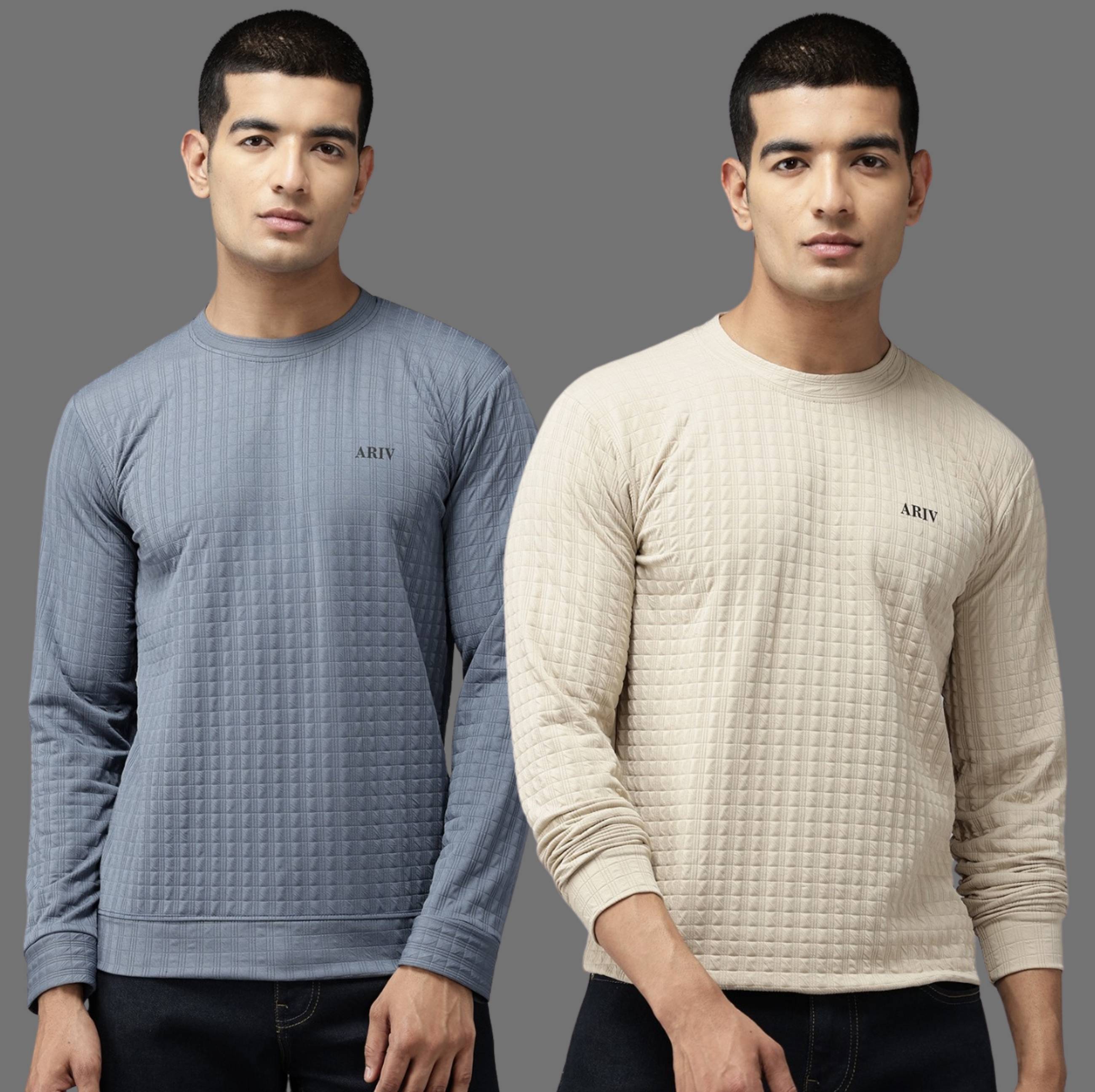 Ticoss Pack of 2 Men Solid Round Neck Polyester Beige, Grey T-Shirt