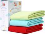 TIDY SLEEP Fleece Baby Bed Protecting Mat (Green-Olive-Yellow, Small, Pack of 3)