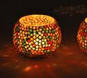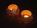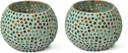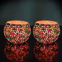 TIED RIBBONS Glass Tealight Holder with T light Candle for festival Decoration Glass 2 - Cup Tealight Holder Set (Multicolor, Pack of 2)