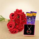 Propose Day Gift for Girlfriend Boyfriend- Artificial Rose Pendent and Chocolate