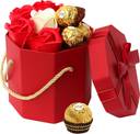 TIED RIBBONS Valentine's Day Gift for Boys, Fiance, Girlfriend, Boyfriend, Him Combo Pack (Faux Rose (Petal Soap), Ferrero Rocher Chocolate Box and Gift Box with Hanging Loop) Plastic Gift Box (Multicolor)