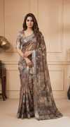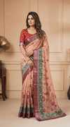 TIGERSNAKE Embroidered Baluchari Georgette Saree (Purple)