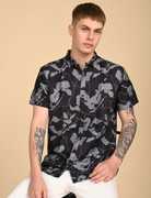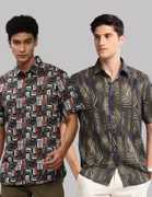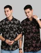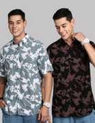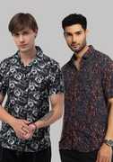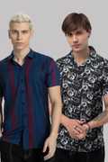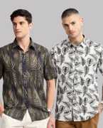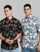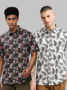 TIGERSNAKE Men Printed Casual Black, White, Blue Shirt (Pack of 2)