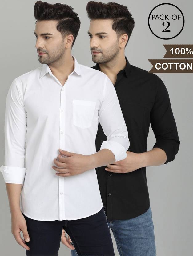 TIGERSNAKE Men Solid Casual Black, White Shirt (Pack of 2)