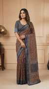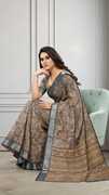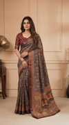 Made from high-quality banarasi silk fabric., Soft, lightweight, and drapes beautifully., Intricate floral design woven in vibrant colors., Comes with an assemblage blouse piece made from the same fabric., Free size., Dry clean only.