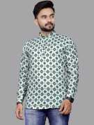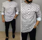 Men Printed Cotton Blend Straight Kurta (White)