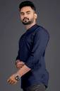 Men Solid Cotton Blend Straight Kurta (Dark Blue)
