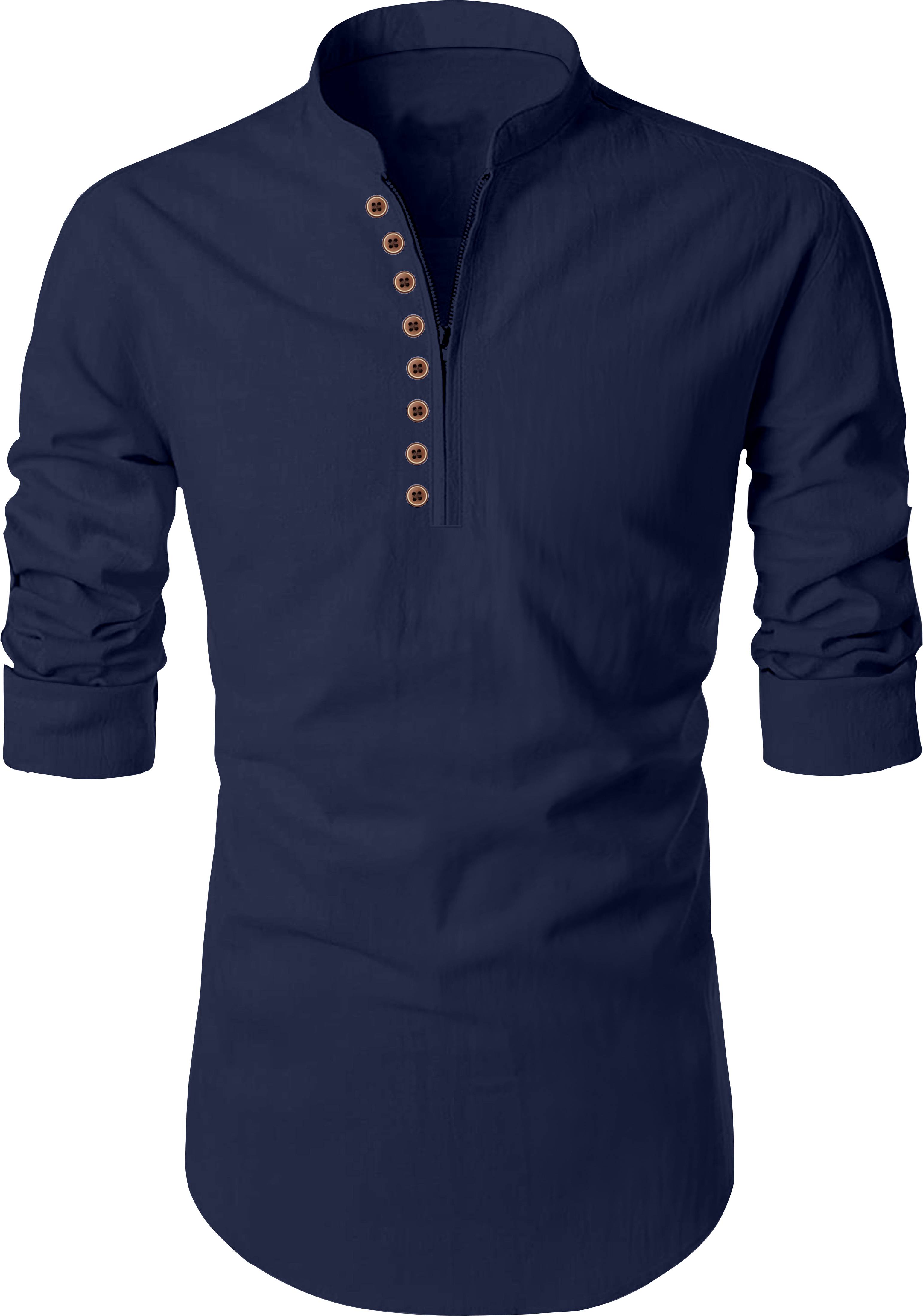 Mandarin Collar, Button Placket, Curved Hem, Straight