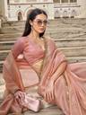 Tikhi Imli Solid/Plain Bollywood Organza Saree (Pink)