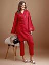 Red color silk blend with heavy sequence work tunic and trouser Co-ord set