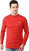 Men Striped Round Neck Wool Blend Red, White T-Shirt