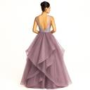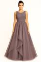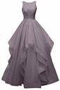 Solid Net Stitched Flared/A-line Gown (Grey)