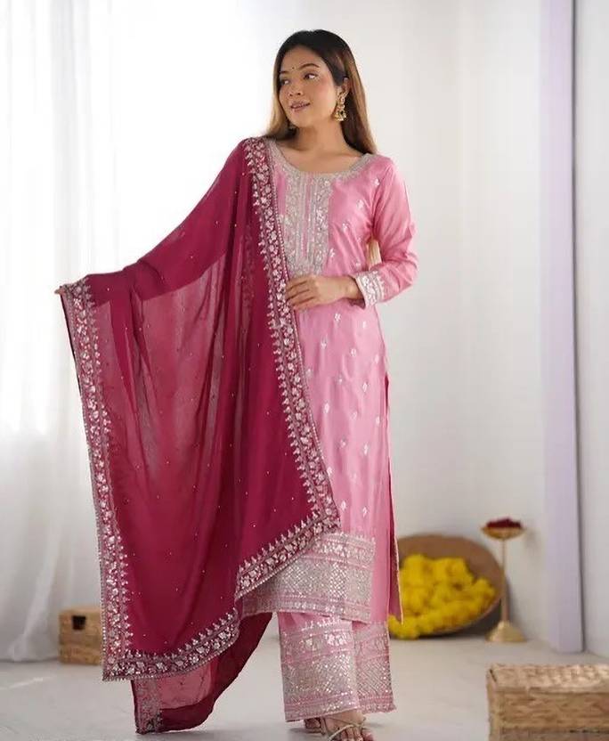 TILKI Embroidered Kurta, Palazzo & Dupatta Set