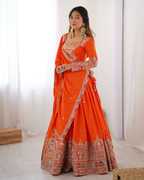 Welcome to the world of TILKI FASHION - a place where premium quality and great value go hand in hand.This embroidered lehenga set for women features high-quality Silk fabric, delivering elegance and comfort.Our semi-stitched lehenga set offers flexible fitting up to 44 inches, making it the ideal lehenga or festival outfit.The timeless Lehenga Choli combined with heavy embroidery makes this lehenga set for women a must-have ethnic outfit. This Indian Wedding Outfit is a versatile choice for many occasions. For weddings and receptions, pair it with Kundan jewelry and heels for a royal finish. During festivals like Diwali, Navratri, or Eid, style it with jhumkas and flats or juttis for ease and elegance. For daytime poojas or intimate family gatherings, keep it light with temple jewelry and soft makeup. Whether styled minimally or richly layered, this Festive Wear Lehenga effortlessly adapts to your mood and event, making it a repeat favorite in your ethnic collection.Please Note :- The picture shown here is for reference only. Actual product may differ slightly in appearance and color to images shown.