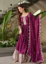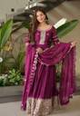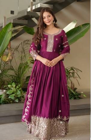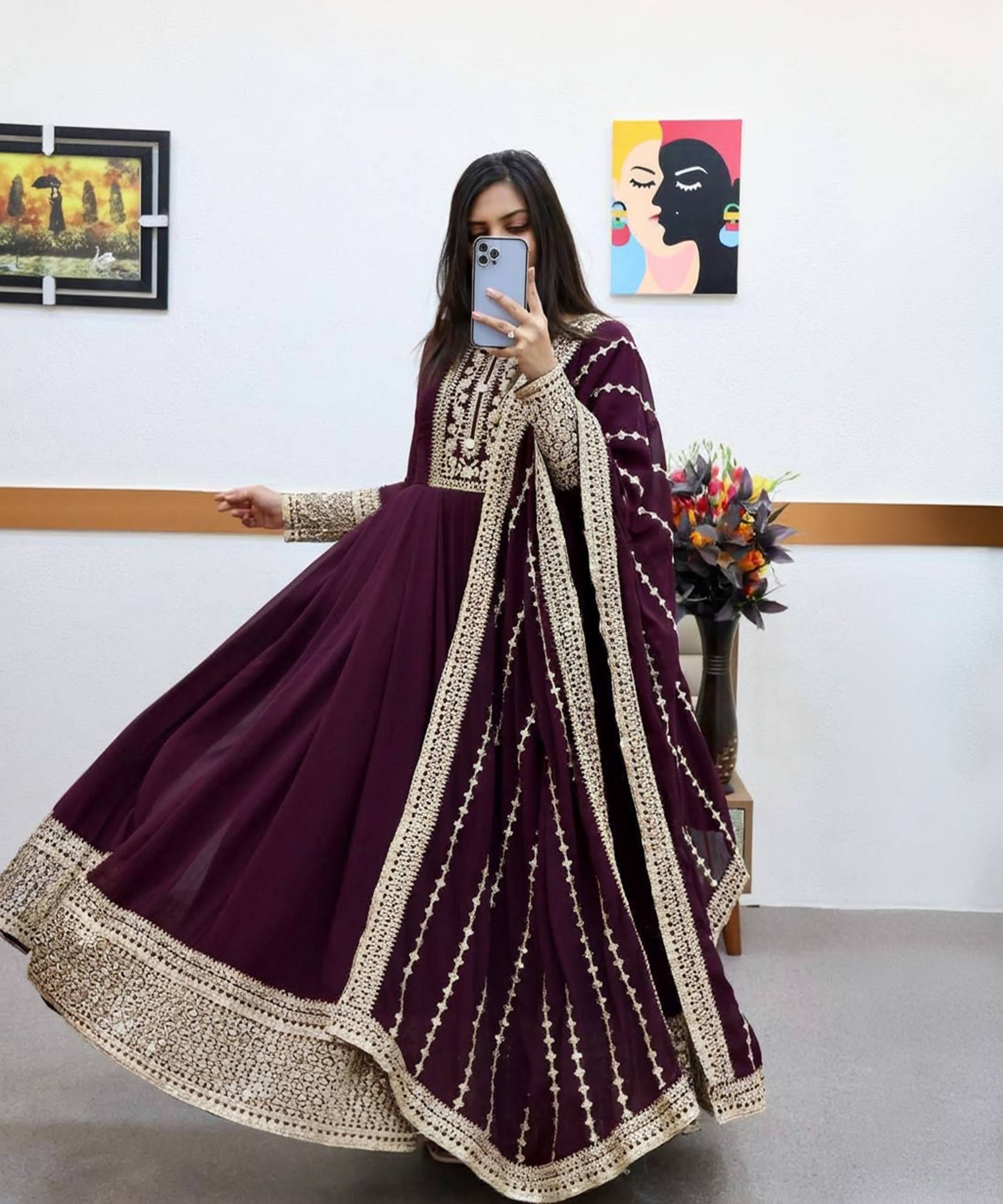 Embroidered Georgette Stitched Straight Gown (Brown)