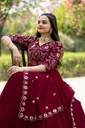 Maroon Vichitra Silk Zari Sequins Embroidery Gown With Heavy Dupatta