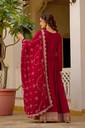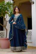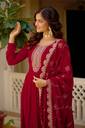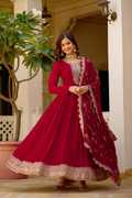 Women's Maroon Faux Georgette Rich Sequins Embroidery Flared Gown With Heavy Dupatta
