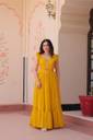 Color :- Yellow Fabrics :- Faux Georgette Work :- Sequins Multithreaded Beads Embroidered work Size :- M(38''),L(40''),XL(42''),XXL(44'') Length :- 56 Inch Lining :- Cotton (Full Inner Top To Bottom) Sleeve :- Sleeveless (Shoulder Double Frill Stitching) Neck :- V Neck Stitching :- Frill Stitch"
