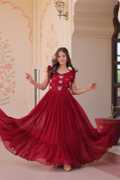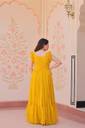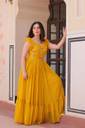 Women's Yellow Georgette Sequins Embroidered Ruffle Flared Gown