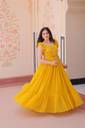Embroidered Georgette Stitched Anarkali Gown (Yellow)