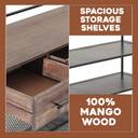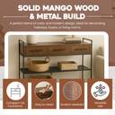 Enhance your home’s entrance or living area with the Timbertribe Console Entryway Table, a stylish blend of rustic mango wood and sturdy metal. This beautifully crafted console table adds both charm and functionality to any hallway, entryway, or living room. With its sleek design and multiple storage shelves, it's perfect for displaying decorative items, organizing essentials, or adding a warm touch to any corner of your home. The natural wood grain finish brings a cozy, earthy feel, while the metal frame ensures long-lasting durability. Whether used behind a sofa, under a mirror, or beside a wall, this console table fits seamlessly into modern, industrial, or traditional spaces. Make your home more organized and visually appealing with this versatile accent piece.