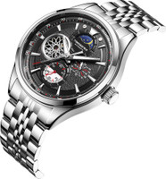Blending timeless elegance with contemporary style, this men’s analogue wristwatch is suitable for a range of occasions from casual outings to formal events and even weddings. It features a traditional analogue display combined with a unique automatic movement that can reflect both craftsmanship and sophistication. And, with its sleek stainless-steel strap and refined alloy case, the design complements a variety of attire, adding a touch of class to any look.