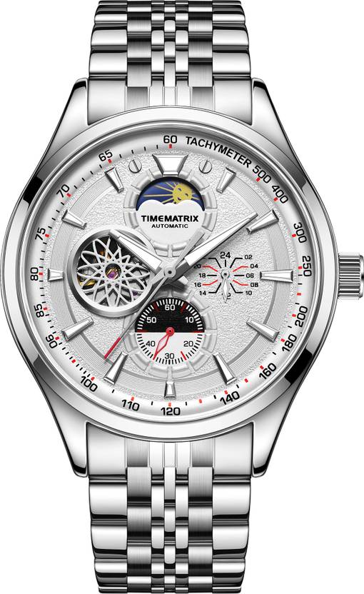 The TimeMatrix men's automatic mechanical skeleton watch combines classic aesthetics with modern engineering, The captivating alloy skeleton dial exposes the intricate inner workings of the watch, showcasing the mesmerizing movements of the gears and springs. Kinetic energy is captured during activity to power a mechanical movement. Can continue to operate at rest.