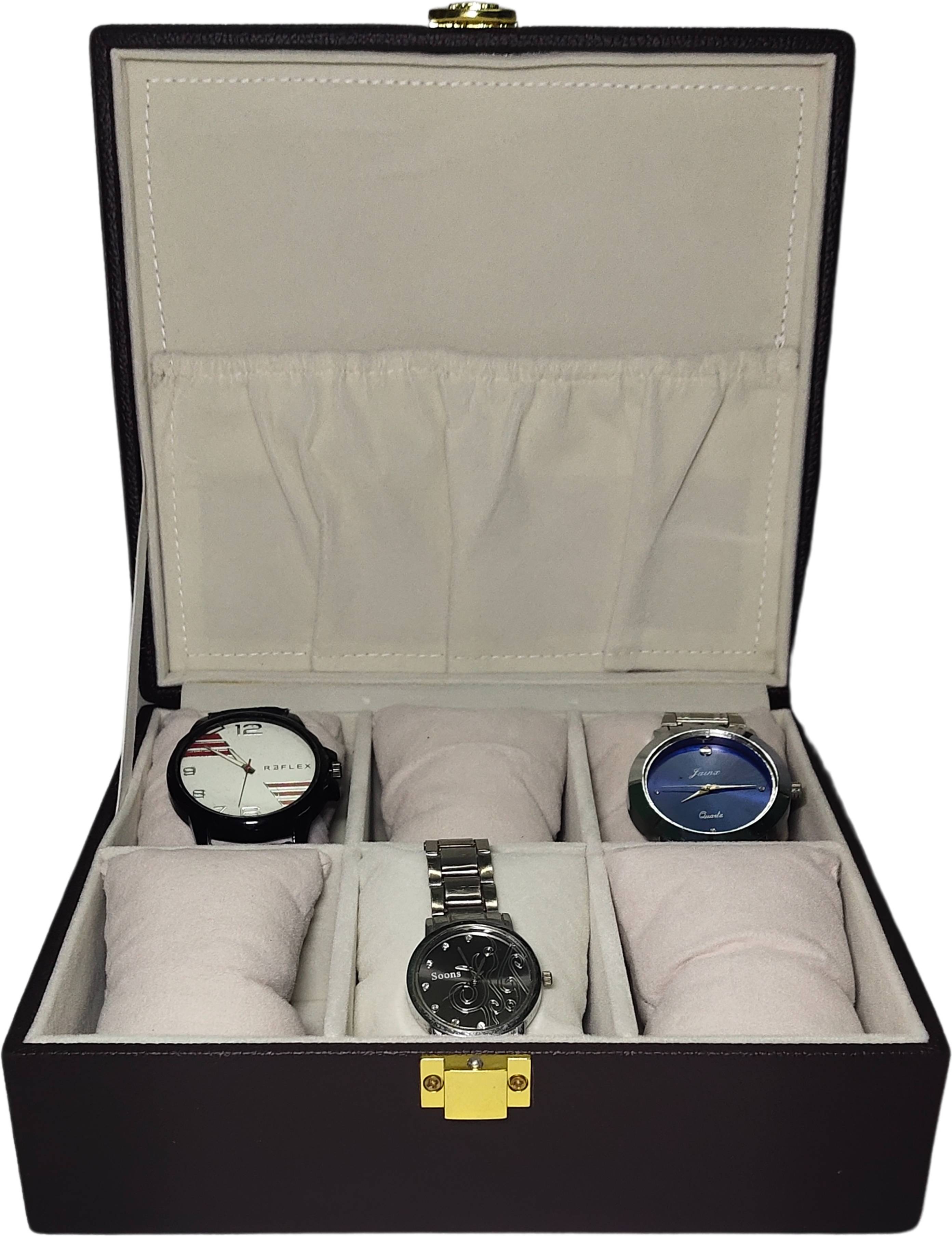 The Premium 6-Slot Watch Box is the epitome of elegance and functionality, offering a luxurious storage solution for your cherished timepieces. Crafted with precision and sophistication, this watch box combines a sleek design with premium materials. Its smooth, black leather exterior exudes sophistication, while the soft velvet interior cradles your watches in comfort and protection.