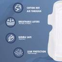 Thanks to breathable cotton layers, these sanitary pads provide excellent leak protection while maintaining a rash-free and comfortable experience. The cotton layers are soft and breathable, ensuring total dryness and comfort throughout the day. And, the material is designed to be gentle on the skin, offering secure protection without causing irritation, making them a reliable choice for those seeking dependable, all-day comfort.