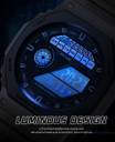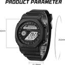Elevate your timekeeping with this robust digital sports watch featuring a distinctive octagonal structure crafted from high-hardness ABS material. The watch showcases a sharp, angular silhouette that breaks conventional design boundaries whilst maintaining practicality. The clear LED luminous display ensures excellent visibility in low-light conditions - simply press to illuminate the screen. This multifunctional timepiece includes a weekly display, time display, and alarm chronograph mode, all easily accessible through one-click mode switching. The watch face presents a comprehensive weekly display from Sunday to Saturday, complemented by a precise digital time readout. Water-resistant to 30 metres, this watch combines durability with functionality. The comfortable band and sturdy construction make it suitable for daily wear and light sports activities. Available in classic black, this watch offers a perfect blend of modern technology and practical design. The luminous keys and adjusting features allow for easy operation, whilst the clear digital display ensures at-a-glance time reading. Whether for sports, casual wear, or daily use, this watch delivers reliable performance with contemporary style.