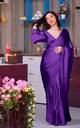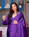 TIMEERAA Solid/Plain Bollywood Satin Saree (Purple)