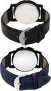 Display Type: Analog; Movement Type: Quartz; Band Colour: Black And Blue; Band Material: Genuine Leather; Case Shape: Round; Dial Colour: White