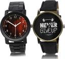 Latest Wrist Wood Texture Chain Watch And Never Give Up Watch - B661-BL46.27 (Combo Of 2 )