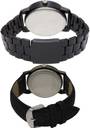 Display Type: Analog; Movement Type: Quartz; Band Material: Stainless Steel And Leather; Band Colour: Black; Dial Colour: Black; Case Shape: Round