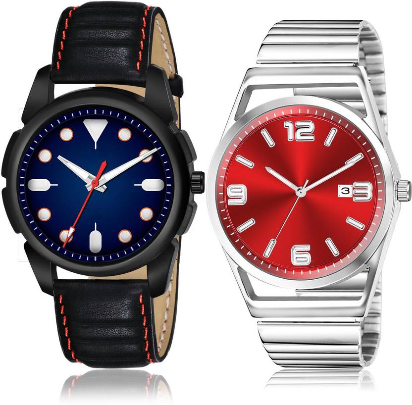 Dial Colour : Blue And Red ; Band Colour : Black And Silver ; Case Shape : Round ; Band Material : Genuine Leather And Metal ; Case Diameter : 43 And 40 mm ; TIMENTER Classical Traditional casual and date chain Black And Silver Colour Analog Genuine Leather And Metal Belt 2 Watch Combo For Boys And Men - S365-BL46.156