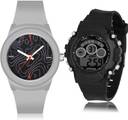 Dial Colour : Black ; Band Colour : Grey And Black ; Case Shape : Round ; Band Material : Resin And Plastic ; Case Diameter : 42 And 41.5 mm ; TIMETRANSELEVATE Latest Formal sports and kids Grey And Black Colour Analog-Digital Resin And Plastic Belt 2 Watch Combo For Boys And Men - BM131-B1