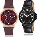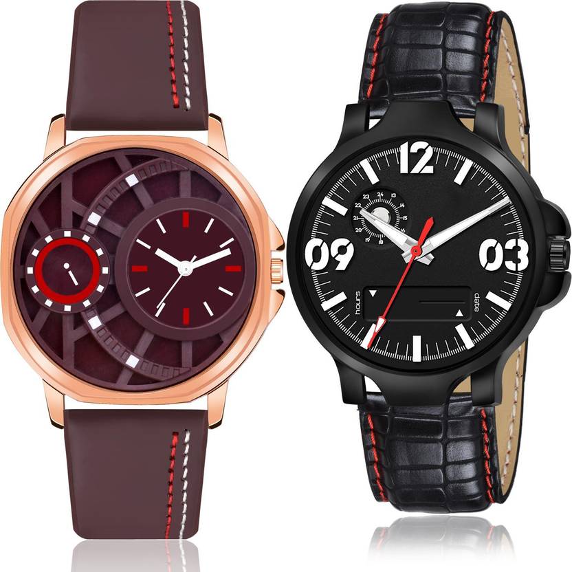 Dial Colour : Red And Black ; Band Colour : Red And Black ; Case Shape : Square And Round ; Band Material : Genuine Leather ; Case Diameter : 43 And 44 mm ; TIMETRANSELEVATE Classical Tread casual chronograph dial and casual Red And Black Colour Analog Genuine Leather Belt 2 Watch Combo For Men - BM48-S520
